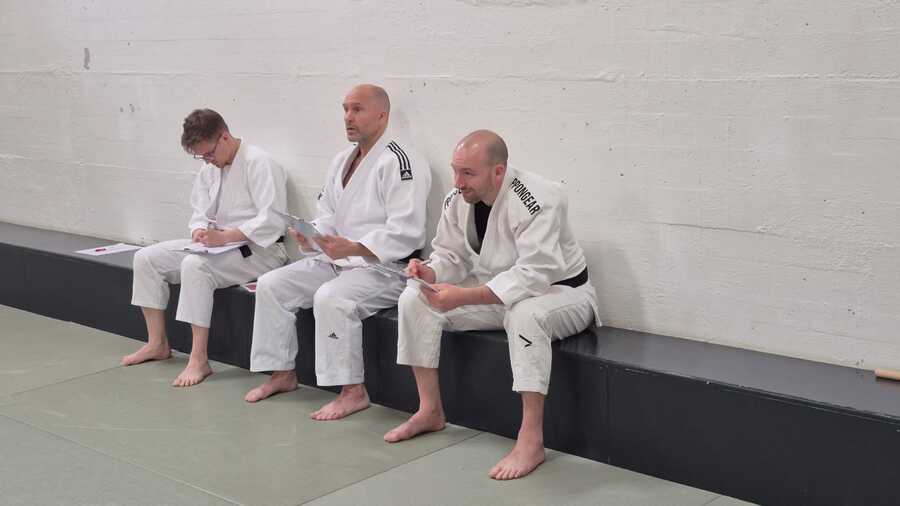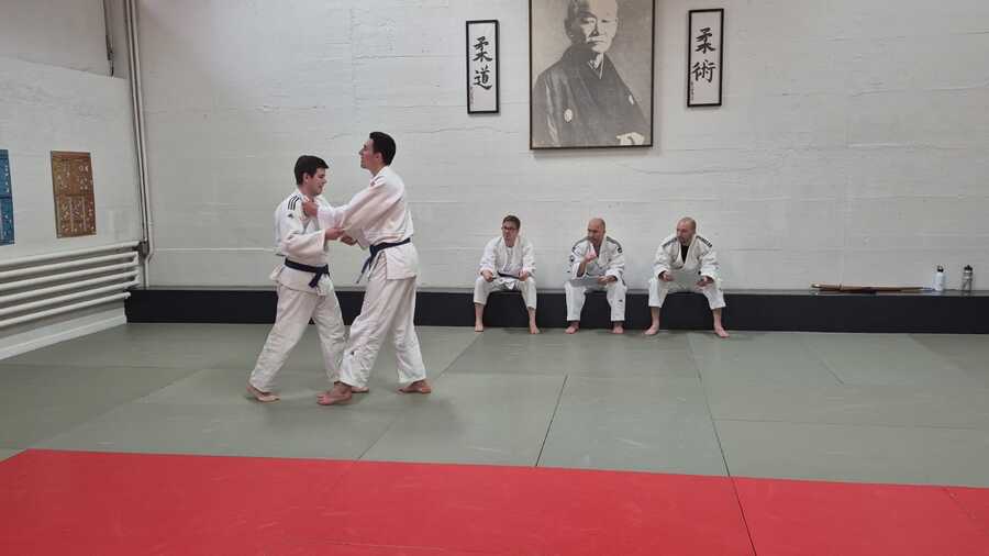 Am Montag, 14. April 2025, stellten sich Fabien und Ramon erfolgreich der umfangreichen Prüfung zum 1. Kyu im Ju-Jitsu (Braungurt). Bereits um 18:30 Uhr – noch vor dem regulären Training – startete ihre intensive Prüfung. Den Auftakt bildete die Kime-no-Kata, die beide abwechselnd als Uke und Tori präsentierten. Mit sicherer Ausführung und ohne grössere Fehler meisterten sie diesen ersten Teil souverän. Anschließend folgte die Überprüfung der Grundtechniken. Im weiteren Verlauf zeigten die beiden Prüflinge unter den aufmerksamen Augen der drei Experten Yannik, Michi und René ihr Können in den verschiedenen Angriffsgruppen. Ein anstrengender Teil war das Randori: Mehrere Angreifer forderten Fabien und Ramon über mehrere Minuten hinweg – auch hier zeigten beide starke Leistungen und Durchhaltevermögen. Der abschliessende Theorieteil stellte dann nur noch eine Formsache dar.